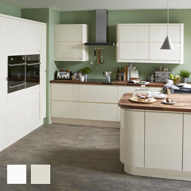 Cooke Lewis Raffello High Gloss Cream Slab Fitted Kitchens Diy